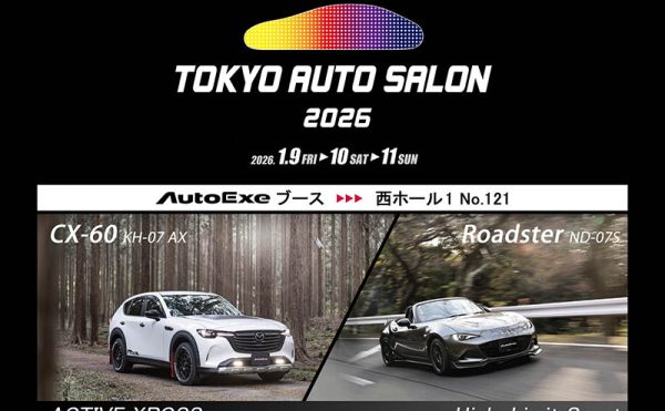 2025-12-17TOPICSTunenori TAKECHI 「TOKYO AUTO SALON 2026」に出展します!カスタムカーの祭典「TOKYO AUTO SALON」に、2026年も出展します!今回は1/9(金)~11(日)の開催。ブース位置は昨年同様、幕張メッセ 国際展示場 西ホール No.121です。 今回のAutoExeブー […]