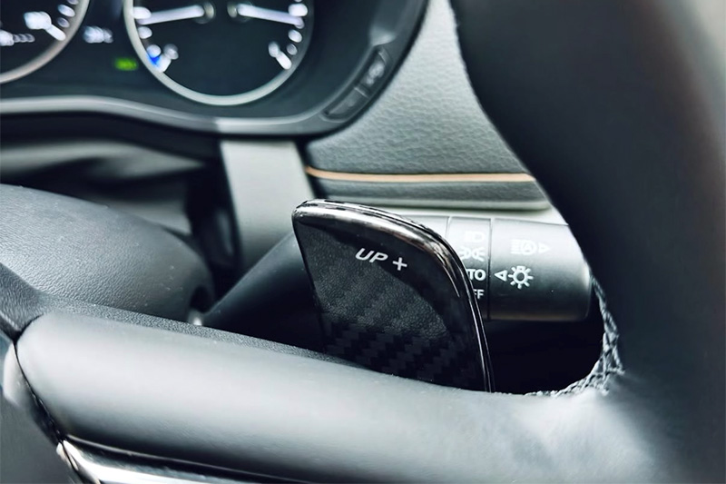 純正のパドルシフトは小さくて指が届きにくかったため、思い切ってオートエクゼのパドルエクステンションを購入しました。