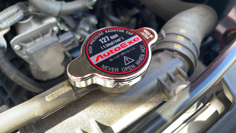 エンジンルーム内はAutoExeのパーツでいっぱいなのですが、新発売されたスポーツラジエーターキャップを装着しました。