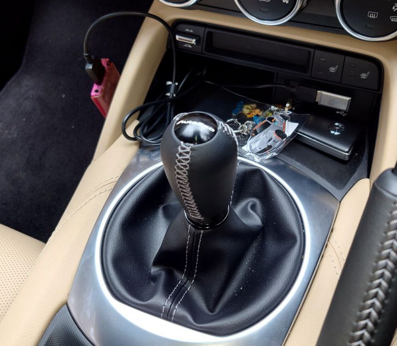 シフトノブ:ロードスターのシフトノブは球状ですが、私はノブを握らず手のひらの押し引きでシフトするのでスティックシェイプにしました。