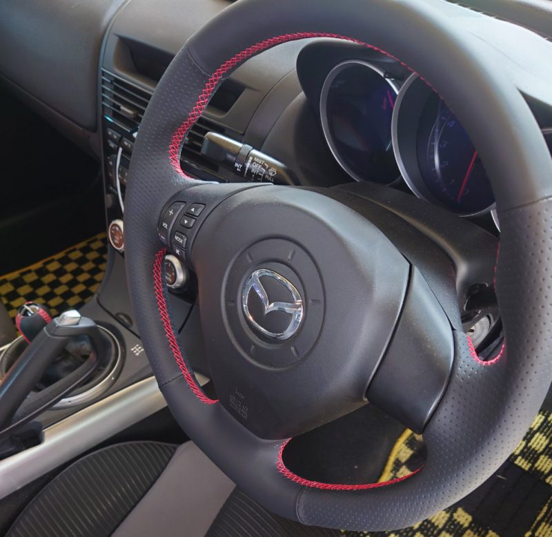シフトノブと赤ステッチのおそろいで気分もあがります。わたしのドライビングには欠かせない良き相棒です。
