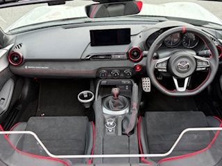 37年前にユーノスロードスターに購入しして以来、一昨年10月にコルベットC8よりNDロードスターに乗換え、スポーツステアリング、クイックシフター、シフトノブ、ローダウンスプリング等々に交換し自分好みのロードスターに仕上げとっても気に入り乗ってました。昨年1小月にMSR12Rの話が有り、当初はもう年(73歳)だし購入するつもりなかったのですが年寄臭いことを言っていては駄目だと思い12Rの申込み(見事に外れ)MSRは予約初日早朝かr並ぶ申込み3月5日に納車されました。若い営業マンがアルカンターラのステアリング、シフトノブを交換するのは勿体無いととの事でしたが、納車早々交換することに決め4月7日にやっと交換出来ました。やっぱりこの仕様が一番です!様々なスポーツカーに乗って来ましたが現在国内で乗るには、MSRのこの仕様が一番だと思います。シフトリンゲージの新しいシールを送って頂きオートエクゼには感謝です。