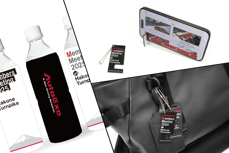 また、当日限定の記念品としてスマホスタンドとしても使える「AutoExe Members Meeting 2025 アクリルキーホルダー」とオリジナルラベルのミネラルウォーターを無料配布します。