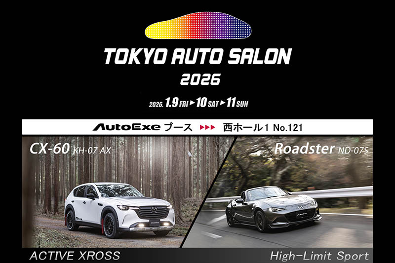 今回のAutoExeブースでは、ロードスター【ND-07S】、CX-60【KH-07 AX】の2台の最新デモカーを展示します。
