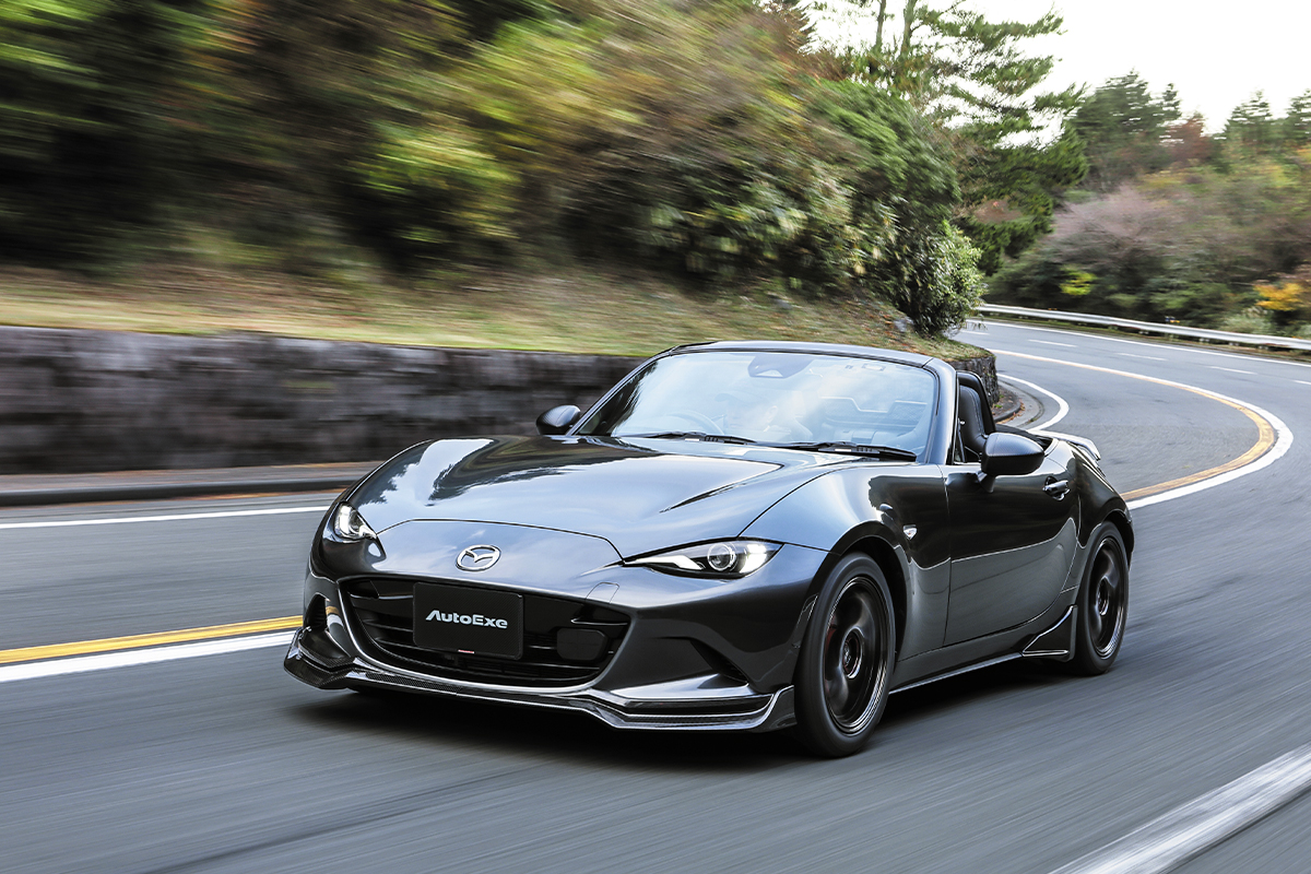 デビューから8年の時を経ても、いまなお稀有な存在として世代を超えた支持を集めるNDロードスター。24年発売の改良モデルは、走りの洗練と時代が求める安全性・快適性を大幅に進化させ、「最新、最良のロードスター」と専門家からも高い評価を得ている。 歴代モデルに向けて数々のチューニングキットを提供してきた私たちAutoExeも、NDの円熟ぶりと歩みを共にして、新たにストリートベストチューンの決定版「ND-07」をリリースした。まずスタイリングは、躍動感溢れるフロントアンダースポイラーやリアルカーボンをアクセントに用いたトランクスポイラー、風の流れをイメージしたリアサイドカウル、官能的なサウンドを響かせる左右2本出しスポーツマフラーなど、オリジナルの美しさを尊重しつつ、AutoExeならではの端正さと力強さをアピールしている。 走行面でのこだわりは、しなやかさとダイレクト感のハイレベルな両立。例えば、マツダ(株)でサスペンションの権威として数々のスポーツカーの設計に携わった貴島孝雄氏監修によるストリートスポーツサス・キット(KIJIMA-SPEC)は、単にロール剛性を高めるのではなく、操舵した瞬間から違和感なく自然に反応するようダンパー微低速域から減衰力の立ち上がりを最重視した設計。長年磨き上げてきた独自の感性チューニングにより、過度なハードさに陥ることなく、量産のポテンシャルを拡大して懐深いストリートベストの走りを実現している。 Tune Your Life=ロードスターと共に過ごす日々を、より濃密なものとする私たちのコンプリートチューン「ND-07」。走りを、人生の歓びを知る良き趣味の大人たちにぜひ味わい尽くしていただきたい。