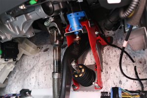 ■フロアクロスバー フロアの左右方向に1本のバーを這わせるシンプルな構造で、タワーバー効果を発揮。強度が高いサスペンション取付けポイントを兼用しているのでボディへの負担も極めて少ない。ユーティリティスペースへの影響も殆どない。単独でも効果を発揮するが、ストラットタワーバーとの同時装着を推奨したい。 >>もっと詳しく