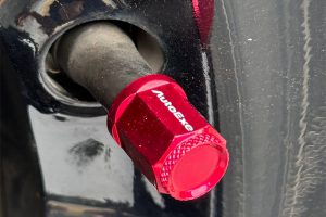 メタル感を放つメカニカルなワンポイントアイテム。量産フューエルリッドカバーに両面テープ装着。
