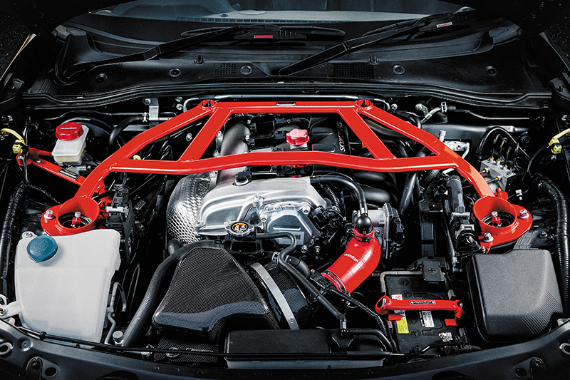 そこでキモになるのは、クルマの基本骨格であるモノコックボディやシャシーの剛性だ。量産車のテクノロジーにおいても、しっかりと謳われているように、その重要性は想像に難くない。事実、量産車のボディ設計は年々進化し、普通にドライビングを楽しむレベルにおいては必要な剛性を備えている。であるが、「もっとカッチリとした乗り味が欲しい」、「クルマと一体感のある走りを味わいたい」といったスポーツ派の感性に深く応えるためには、チューニングパーツによる剛性アップの余地が少なくないと私たちは考えている。