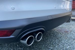 左右マフラー周辺部まで一体成型した立体感溢れるデフューザーデザイン。ピアノブラック塗装済み。