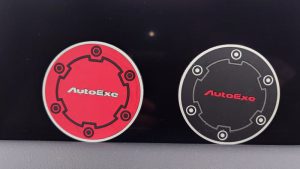 <主な仕様>・CFRP製(ロゴプレート部:ドライカーボン) ・UVカットクリアコーティング仕上げ ・ステンレス製低頭ボルト ・AutoExeロゴ入り ・1台分3個セット