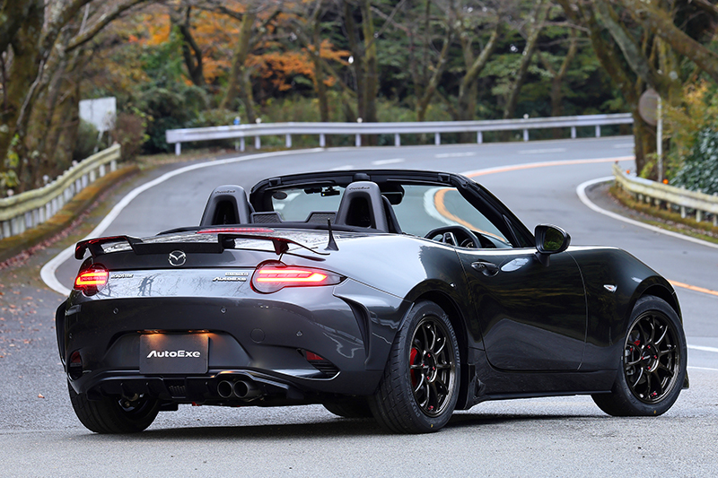 AutoExe OPTIONSは、いつもの市街地やお気に入りのワインディング、週末の高速道路といった日常的なシーンで走りをグレードアップを実感できるトータルチューニングによりロードスターの人馬一体感をピュアに洗練。特別なライトウェイトスポーツへと仕立てます。