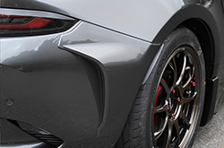 リアタイヤ周辺の空気抵抗低減をイメージしてデザインでサイドビューをさりげなく引き締めます。CFRP(ドライカーボン)製。