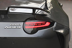 単に消音するのではなく、排気の流れをコ単に消音するのではなく、排気の流れをコントロール。アクセルの踏み込みに応じてエンジンが活き活きと吹け上がる感覚を重視したセッティングを心掛けています。少々控えめな量産仕様の音質を力強くスポーツカーらしいサウンドに変化させオープンエアドライビングを盛り上げます。近年厳しくなった騒音規制も余裕でクリア。室内での会話や住宅地でのアイドリングでも気にならないレベルにチューニングしています。リアバンパーから主張するアグレッシブなテールエンドが個性を主張します。