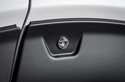 彫の深い水平基調のフィンタイプ。表面にピアノブラック、凹部に艶消しブラック塗装を施しマツダエンブレムをトレードイン。
