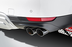 単に消音するのではなく、排気の流れをコントロール。アクセルの踏み込みに応じてエンジンが活き活きと吹け上がる感覚を重視したセッティングを心掛けています。サウンド面ではスポーツ派には少し物足りない控えめな量産車から音質をスポーティに変化させドライビングの気分を盛り上げます。近年厳しくなった騒音規制も余裕でクリア。室内での会話や住宅地でのアイドリングでも気にならないレベルにチューニング。左右4本出しのデュアルテールがリアビューを精悍な風貌に仕立てます。