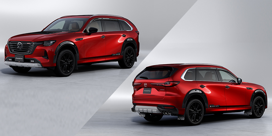 “スポーティ×ラギッド”をコンセプトにしたアクティブクロススポーツ「KL-07AX」スタイリングキットを公開しました。 CX-80が秘めた冒険心を解き放つ、新しい可能性を全身で表現すべく、ダイナミックに仕上げられたLEDアクセサリーランプ内蔵のアンダーガーニッシュを筆頭に力強さを感じさせるオーバーフェンダーやマッドフラップといったアイテムを新設。多くの製品はマツダディーラーオプションとして新車同時装着いただける体制を整えました。 今後は、車高をアップし走破性と積載力を高めた専用サスペンションといったコンプリートチューンを充実させていきます。乞うご期待ください。