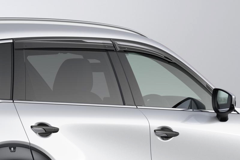 スポーツサイドバイザー 走行風を利用し室内の空気を排出するベンチレーション機構付き。サイドビューをスポーティに引き締めるエアロフォルムも見逃せない。